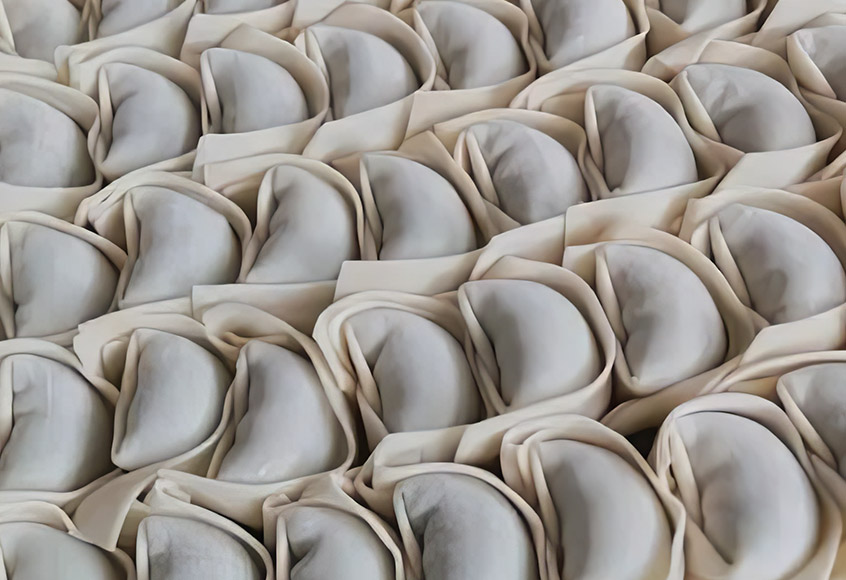 Dumplings af forskellige former og fyldninger i høj hastighed.